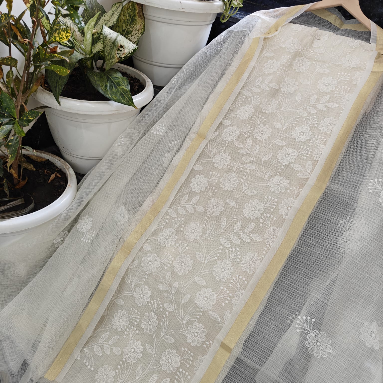 Cotton kota embroidery dress material 3 piece set Top duptta bottam