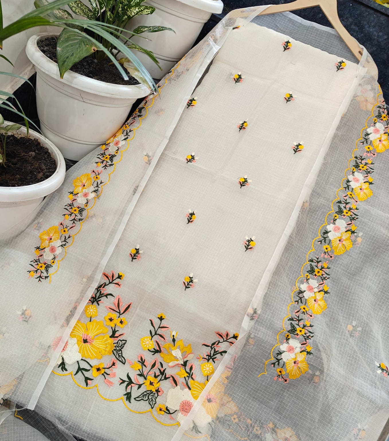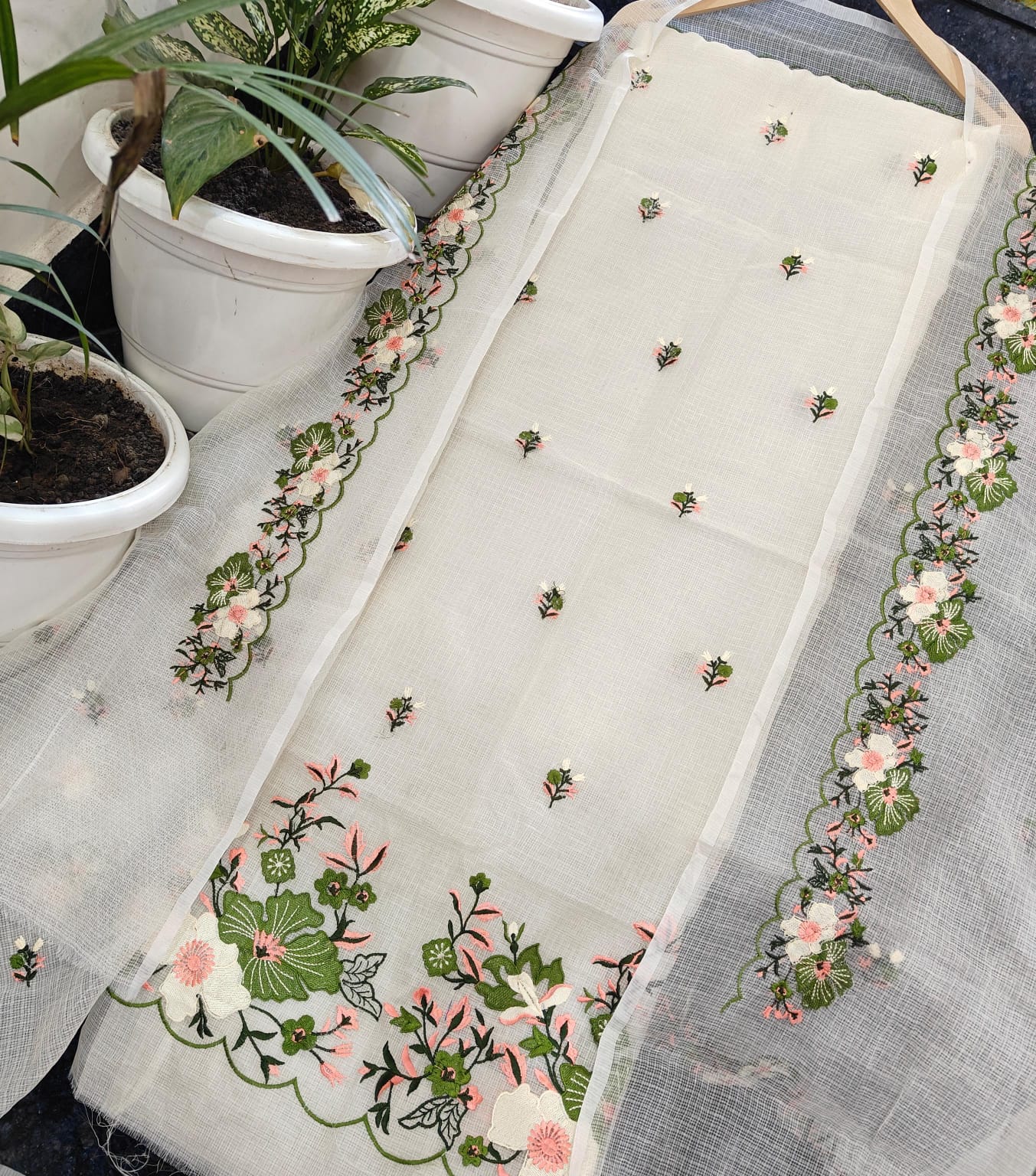 Soft silk kota hand kantha work 4 piece set Top duptta bottam lining