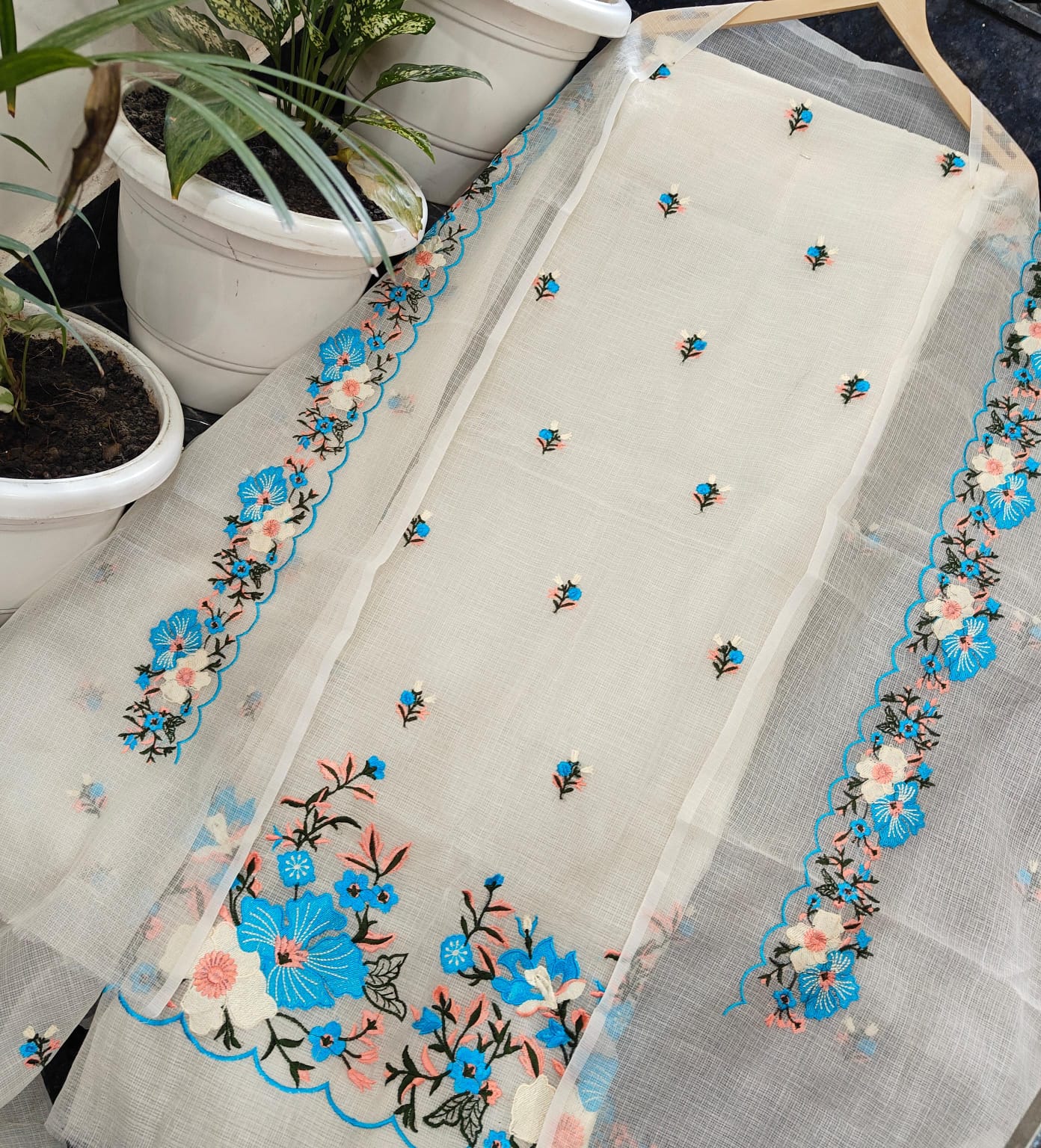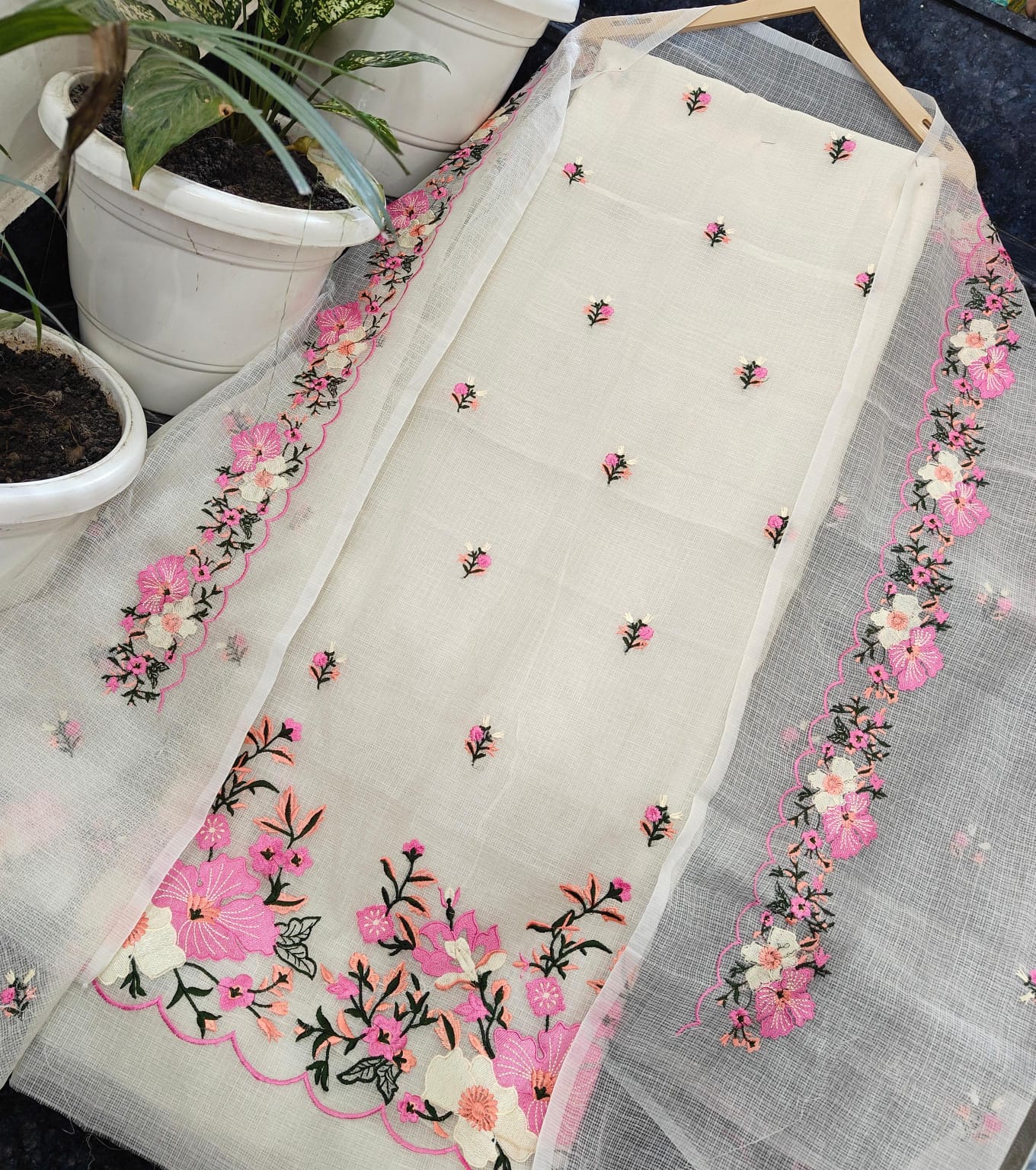 Cotton kota embroidery dress material 3 piece set Top duptta bottam