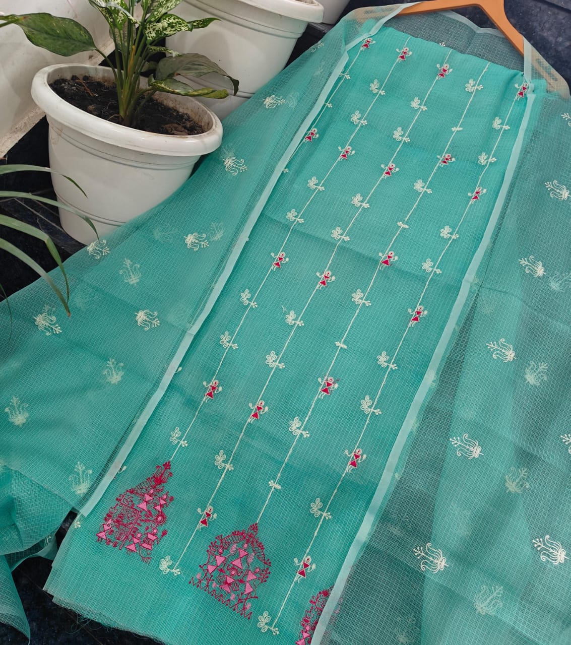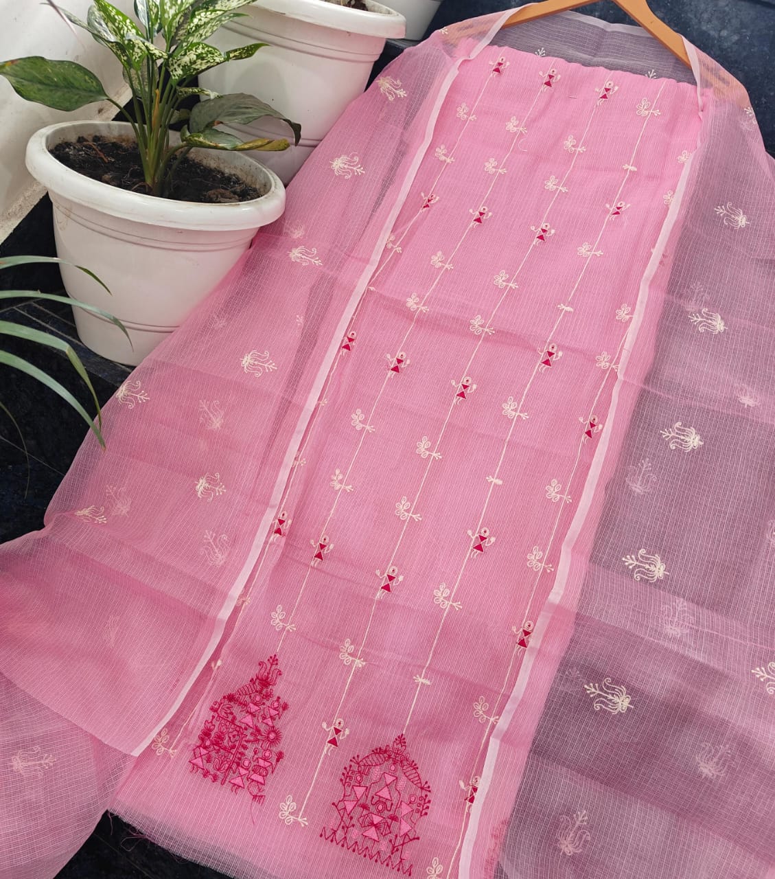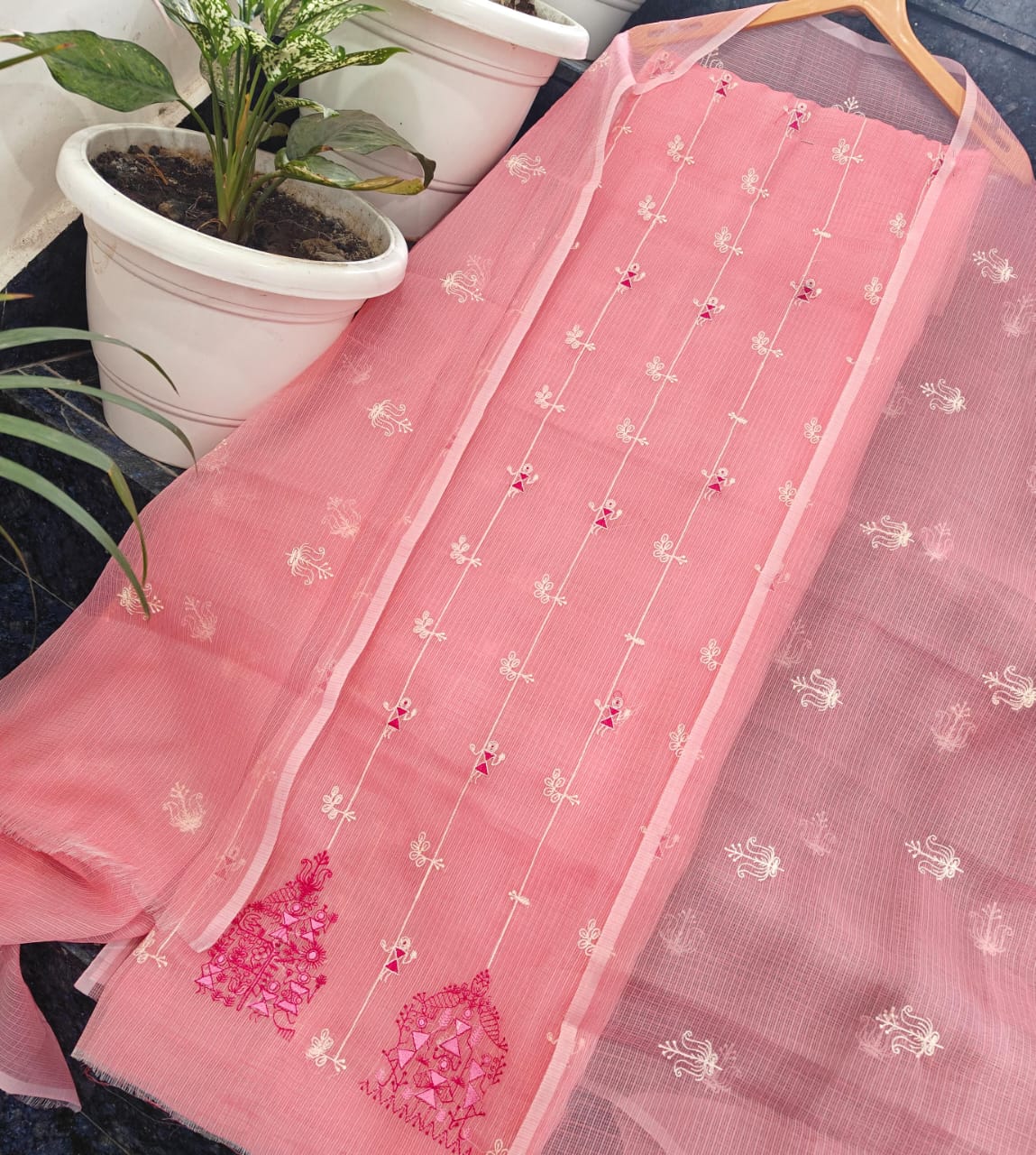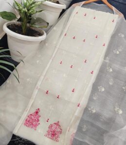 Soft silk kota hand kantha work 4 piece set Top duptta bottam lining
