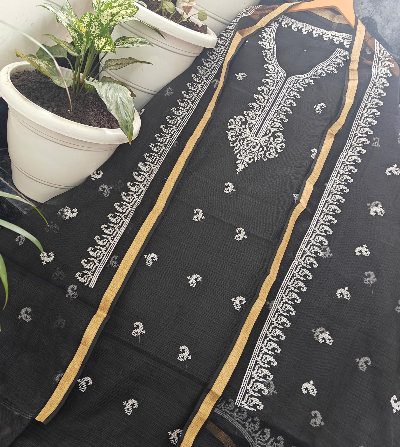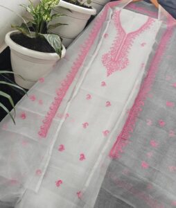 Kota doria dress material Embroidery work Shirt. N dupatta bottam