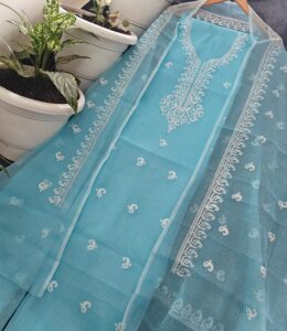 Be the first to review “Cotton kota embroidery dress material 3 piece set Top duptta bottam” Cancel reply