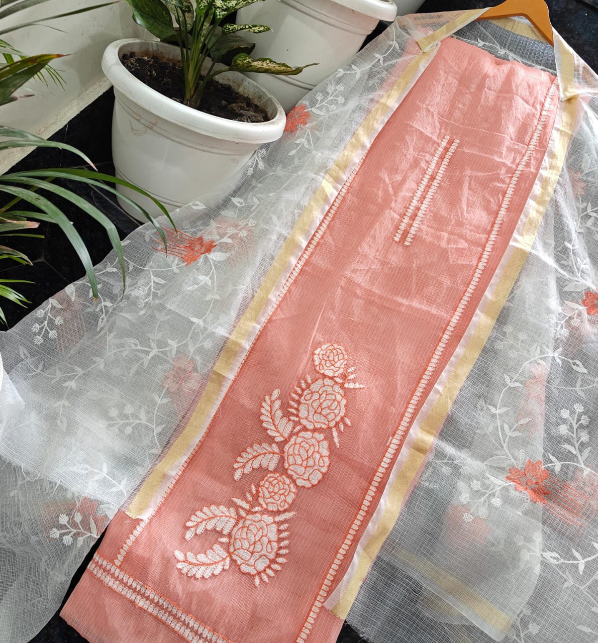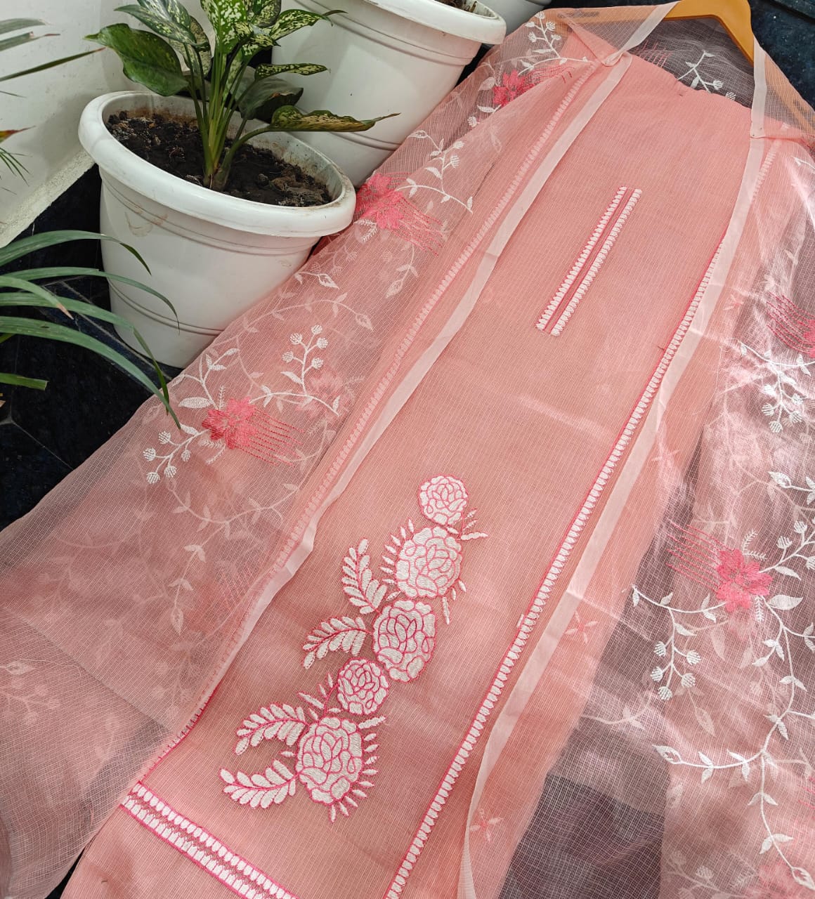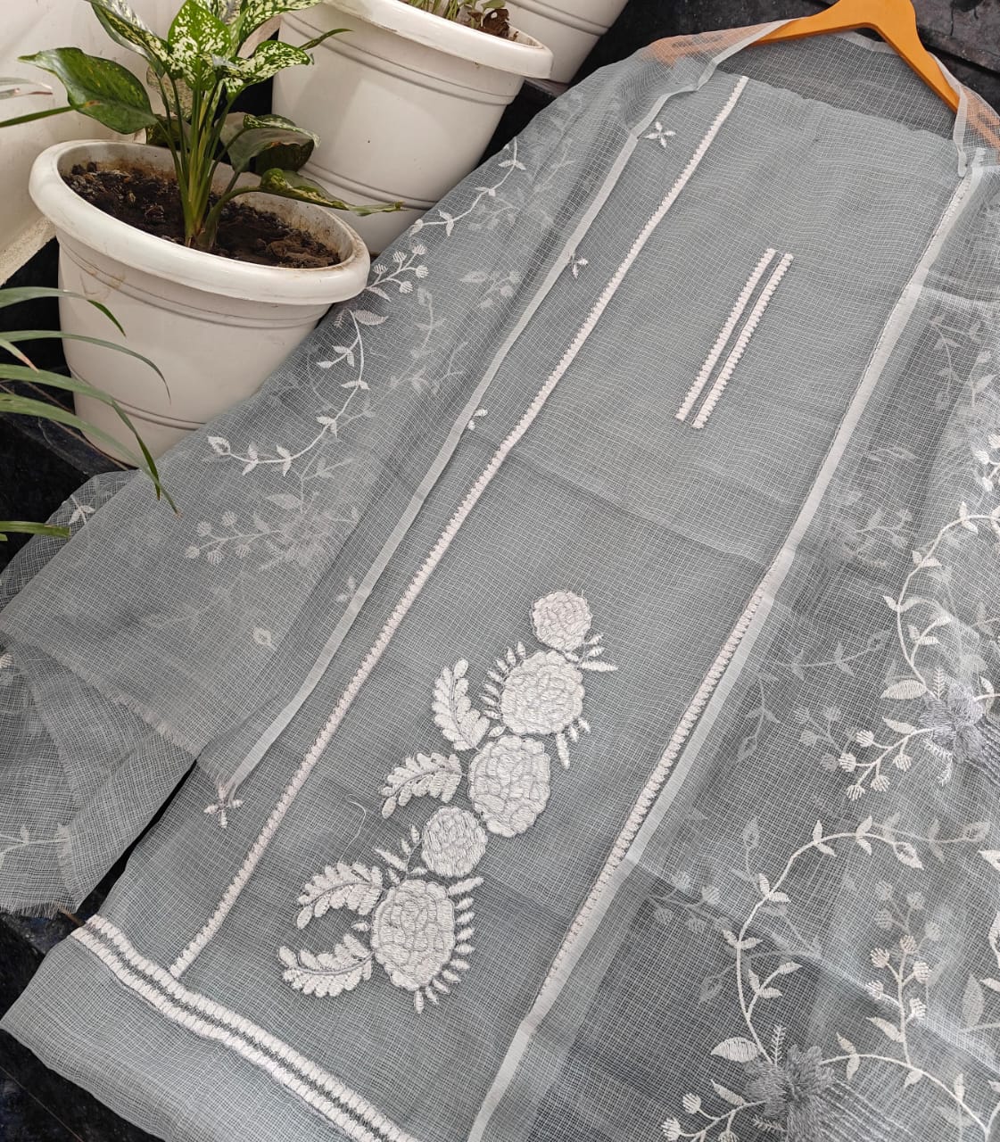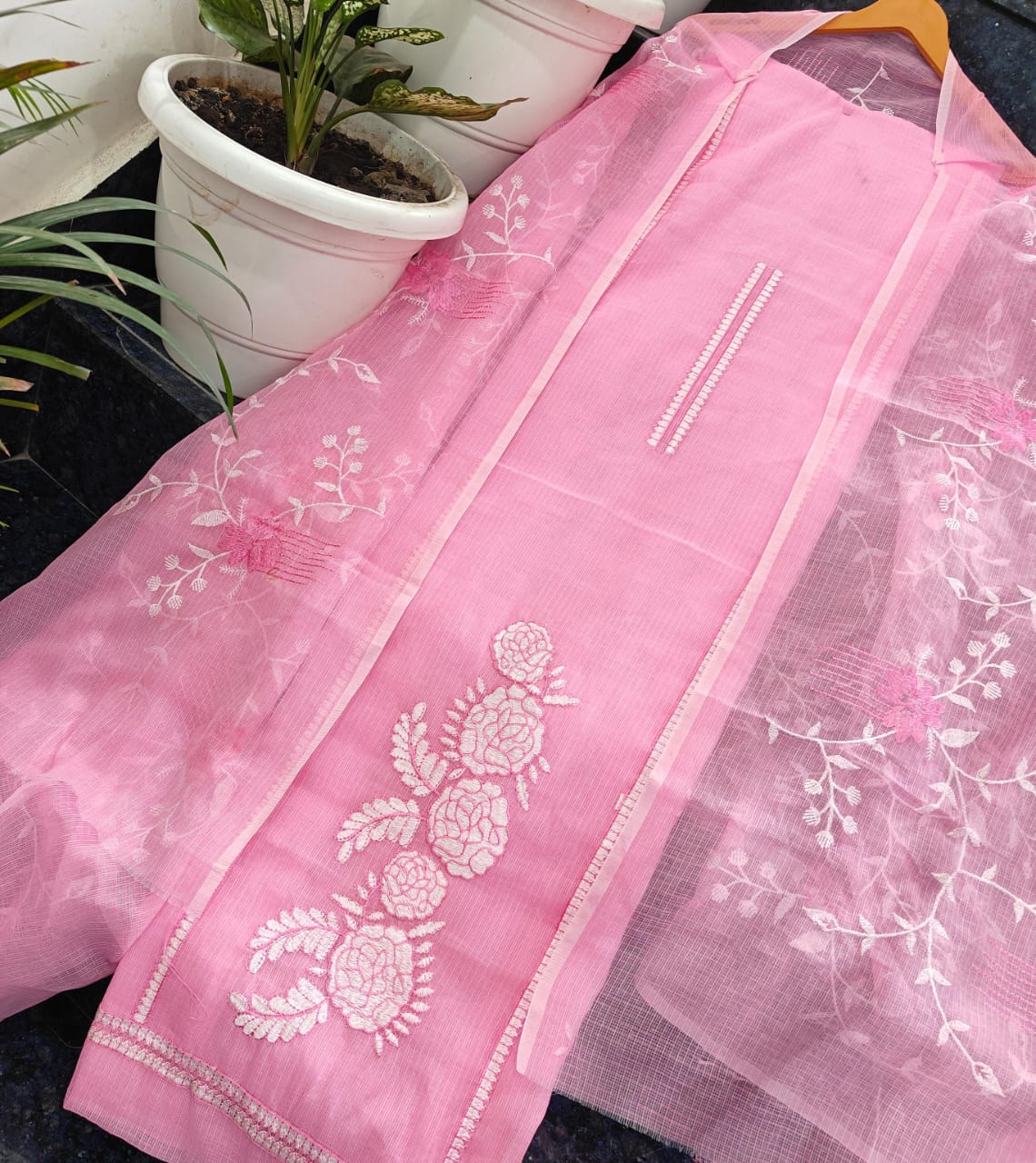 Kota doria dress material Embroidery work Shirt. N dupatta bottam