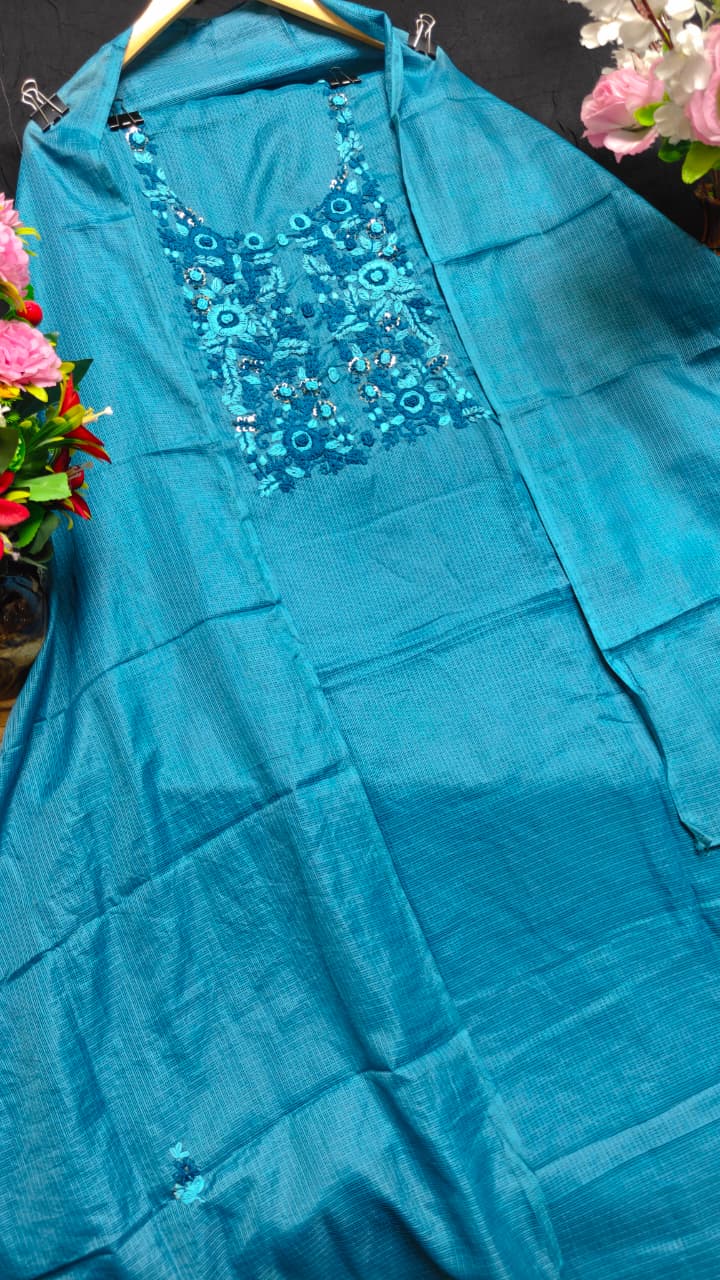 Kota doria dress material Embroidery work Shirt. N dupatta bottam